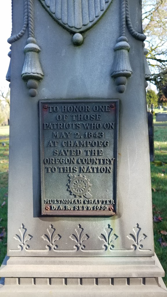 The largest number of markers were placed between 1929 and 1939. More than 35 markers are said to have been placed in Oregon, Washington, and Idaho to honor the Men of Champoeg, those who founded Oregon’s Provisional Government on May 2, 1843.